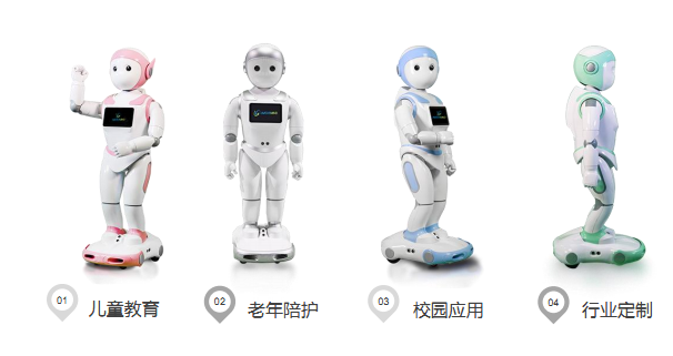 產(chǎn)品應(yīng)用于兒童教育、老年陪護(hù)、校園應(yīng)用多個(gè)領(lǐng)域,亦可根據(jù)行業(yè)特點(diǎn)進(jìn)行定制。陪伴型機(jī)器人“i寶”身高1.03米,重量12.5kg,全身有24個(gè)活動(dòng)自由度,搭載定制Android系統(tǒng),配有6英寸LCD觸摸屏輔助交互,全身共擁有18個(gè)傳感器,可透過(guò)視覺(jué)、聲源定位響應(yīng)方向。機(jī)器人將人工智能與融合型終端結(jié)合,可為3-12歲兒童提供教育、娛樂(lè)、交友、家長(zhǎng)監(jiān)護(hù)、特色編程等多種功能,并可進(jìn)行深層次互動(dòng)。